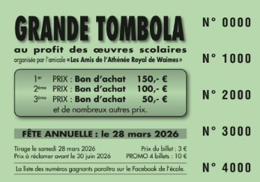 L’Amicale de l’AR Waimes organise une tombola pour soutenir les élèves et leurs activités ainsi que les projets éducatifs! 🎁 À gagner : Des bons d’achats de 150€ – 100€ – 50€ Des cartes...