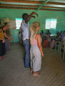 « Aujourd’hui (5 mars) 36 degrés. C’est très très chaud mais malgré tout nous continuons notre distribution de matériel scolaire dans les écoles. Cette après midi nous avons été accueillies dans l’école de Samba Geye qui est une des écoles qui obtient les meilleurs résultats scolaires au niveau national. Ils pratiquent une pédagogie active avec l’élève au centre du processus d’apprentissage. Visite très instructive et visite aussi du potager et du poulailler qui permettent aux enfants qui habitent loin (jusqu’à 1 heure de marche depuis la brousse) d’avoir un repas chaud 2x/semaine. Ce sont les élèves des classes qui entretiennent ceux-ci tous les jours. »