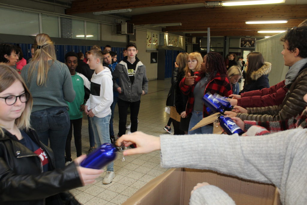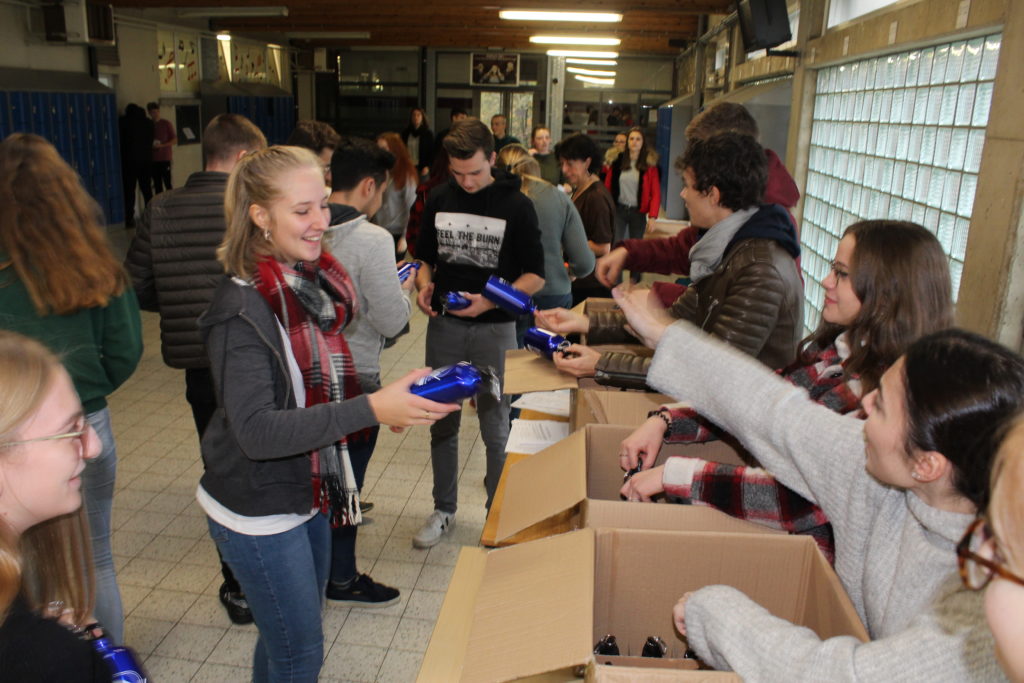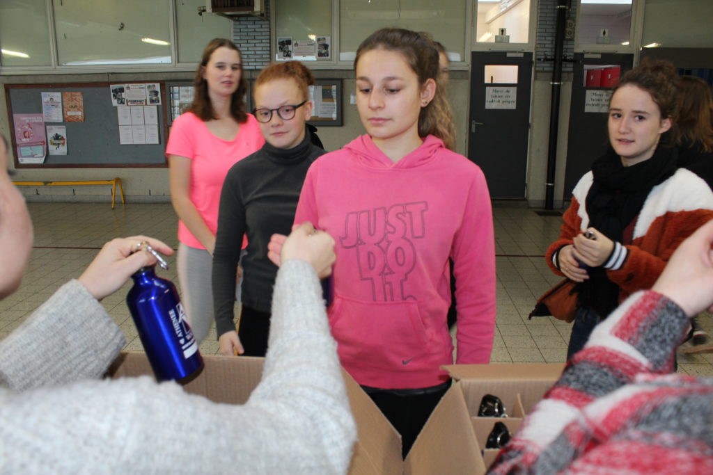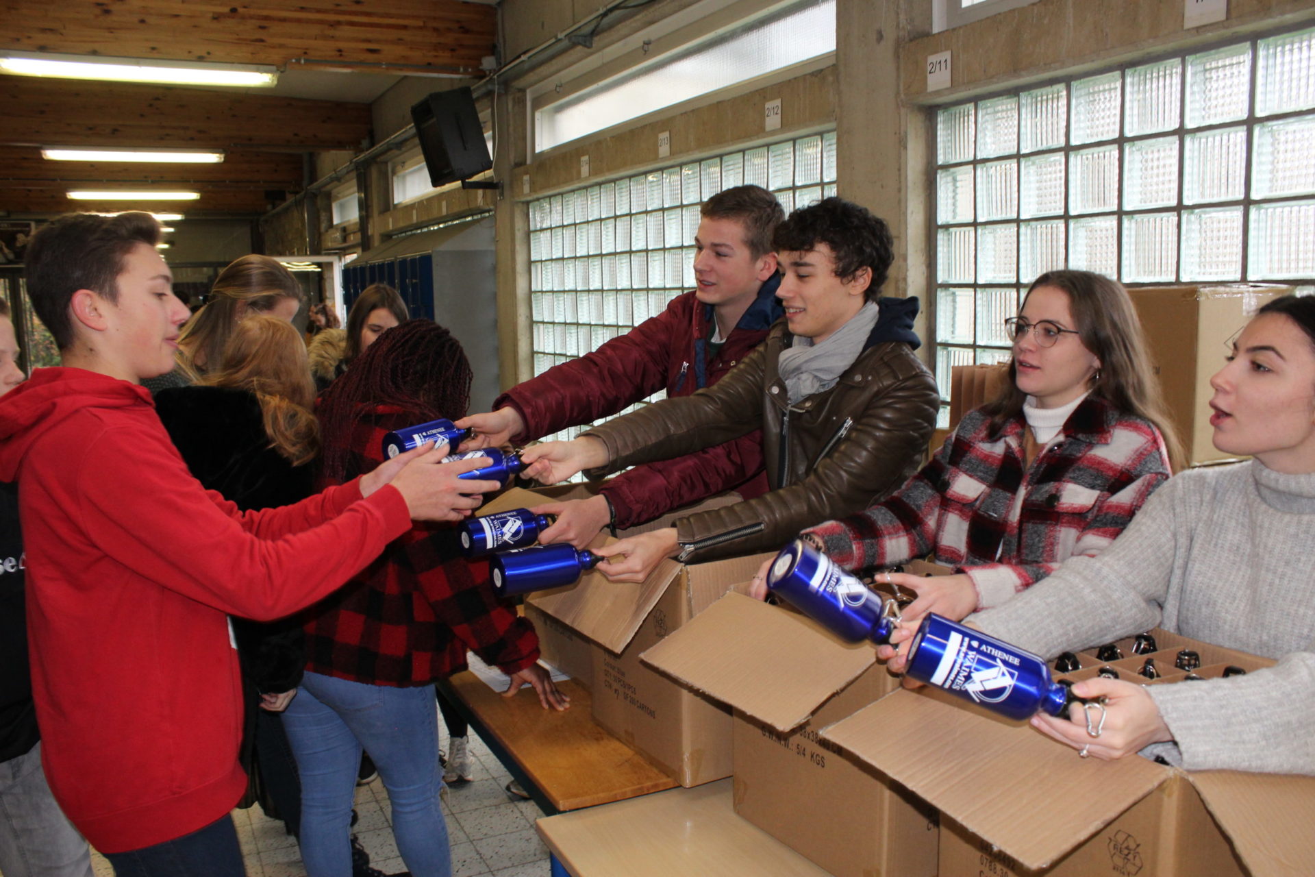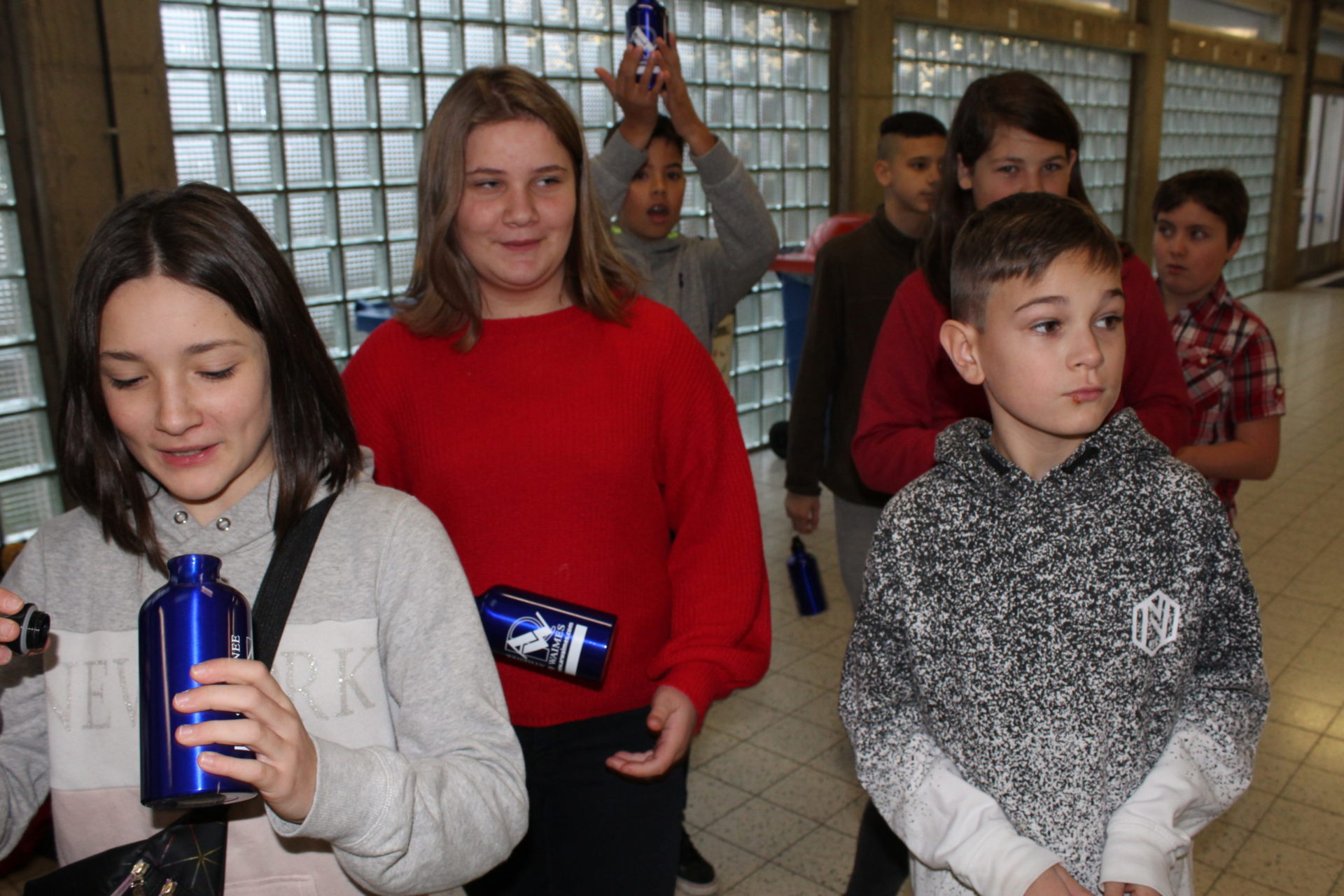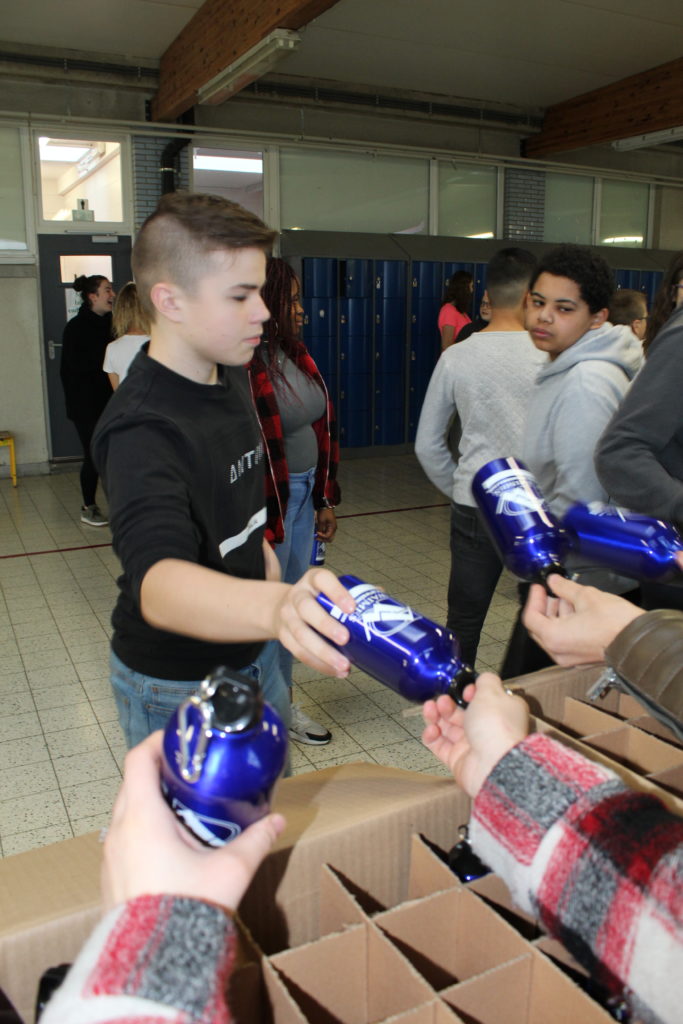 Ce 4 novembre, les élèves ont donc reçu une gourde au logo de l’école avec un espace pour écrire leur nom.