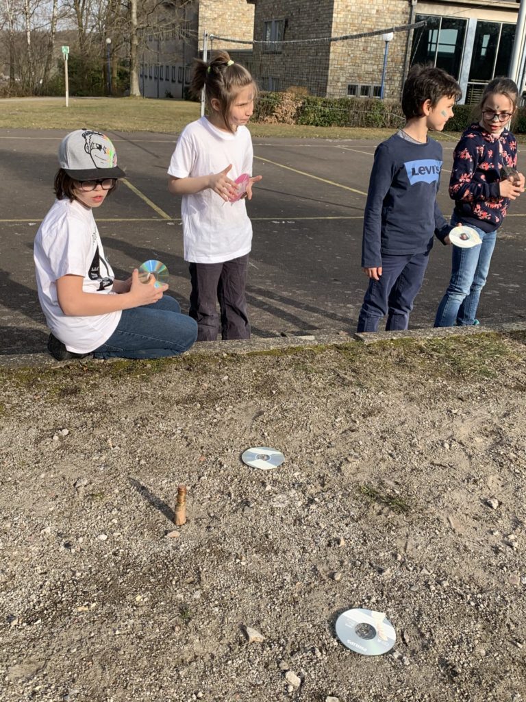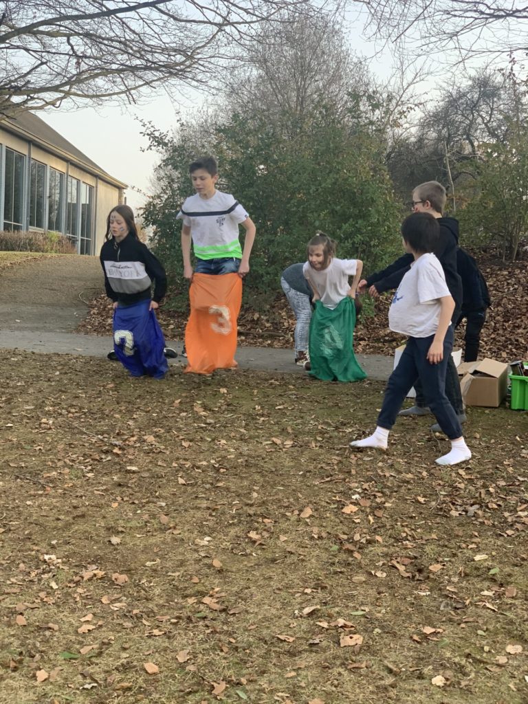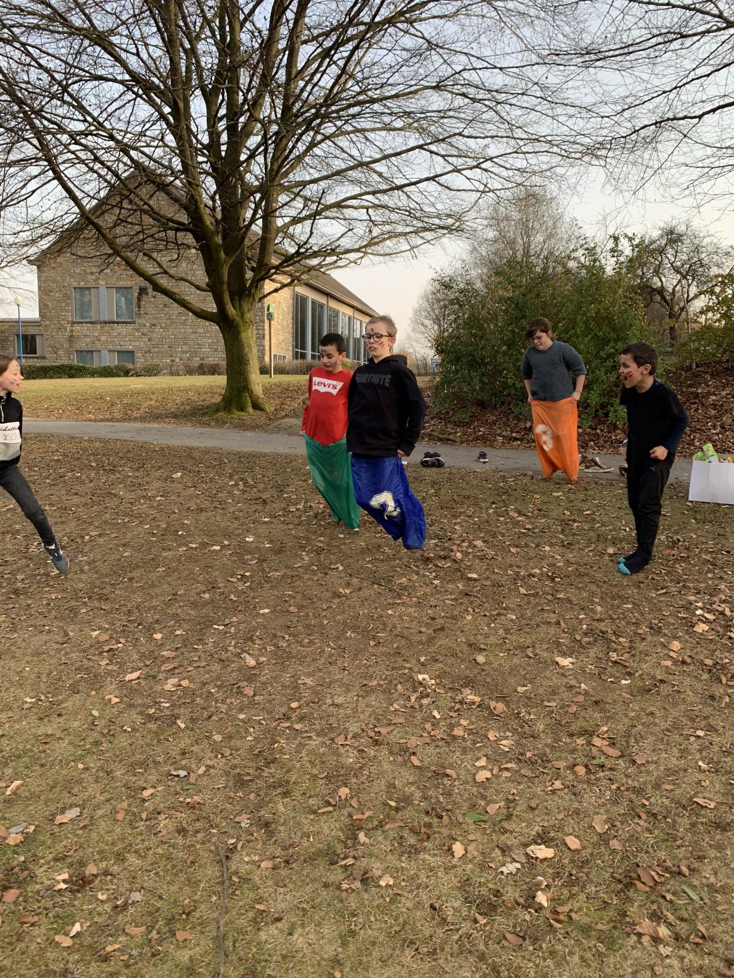 Mercredi 3 mars, pendant que les plus âgés se baladaient, j’ai organisé une série de petits jeux dont « le bouchon », « la course en sac », « le chipe tissus et tennis mains », un mini foot .
