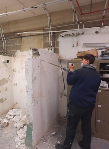 La semaine du 7 juin, les 3, 4, 5 et 6 P (section chauffage/sanitaire) ont démoli les anciennes logettes se trouvant dans les ateliers.