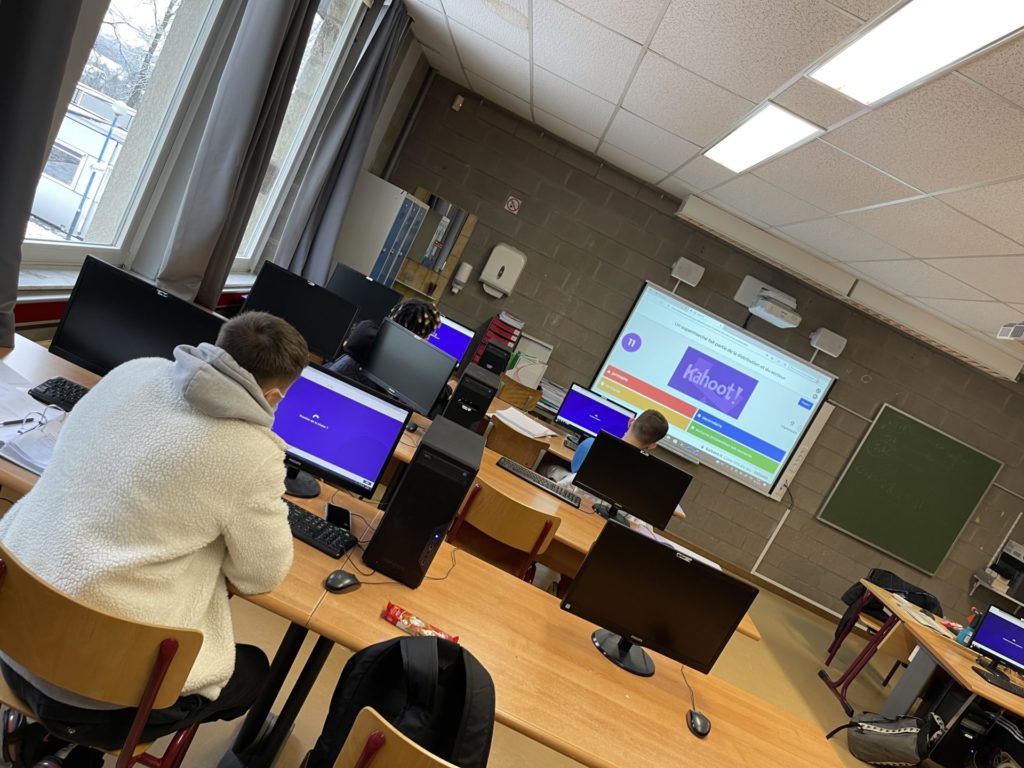 En effet, tout au long de l’année, les élèves de 3e et 4e technique gestion peuvent évaluer leur niveau d’apprentissage à l’aide de divers jeu comme par exemple ici Kahoot, un quizz interactif en ligne. Une manière ludique d’aborder le cours différemment et très appréciée par les élèves, surtout quand, comme ici pour noël, les vainqueurs sont récompensés par quelques friandises.