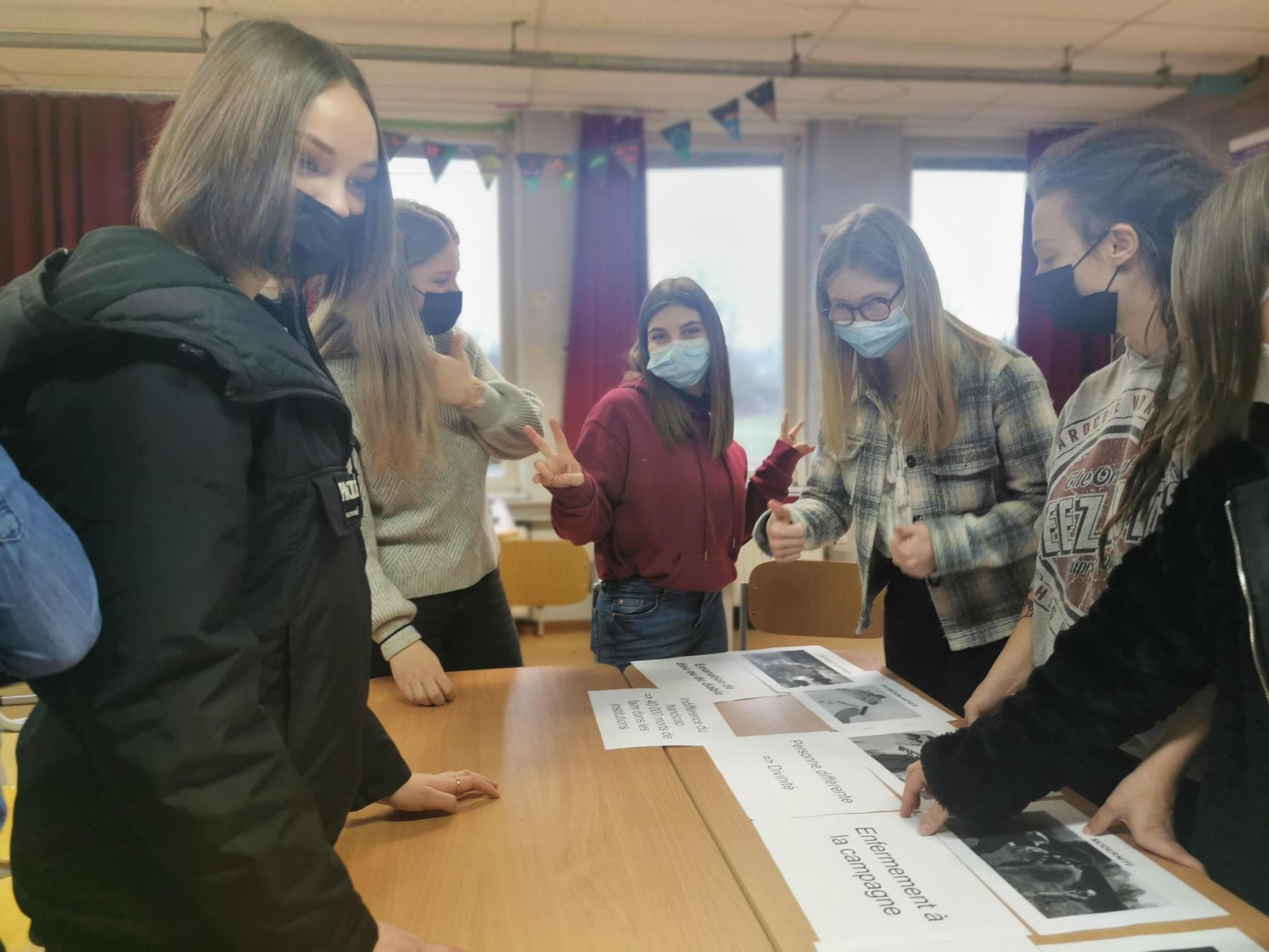 Durant le cours de travaux pratiques, les élèves de 6 TQ aed ont dû collaborer afin de refaire la ligne du temps des représentations du handicap par la société à travers les époques.