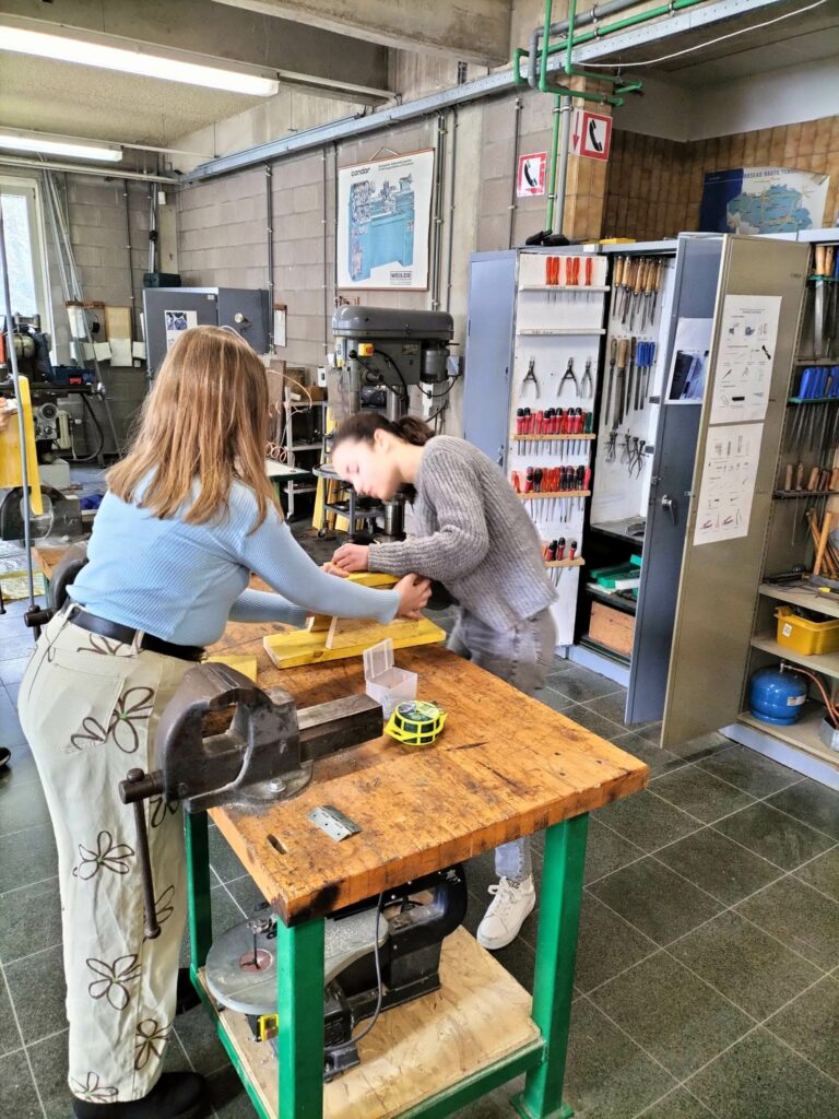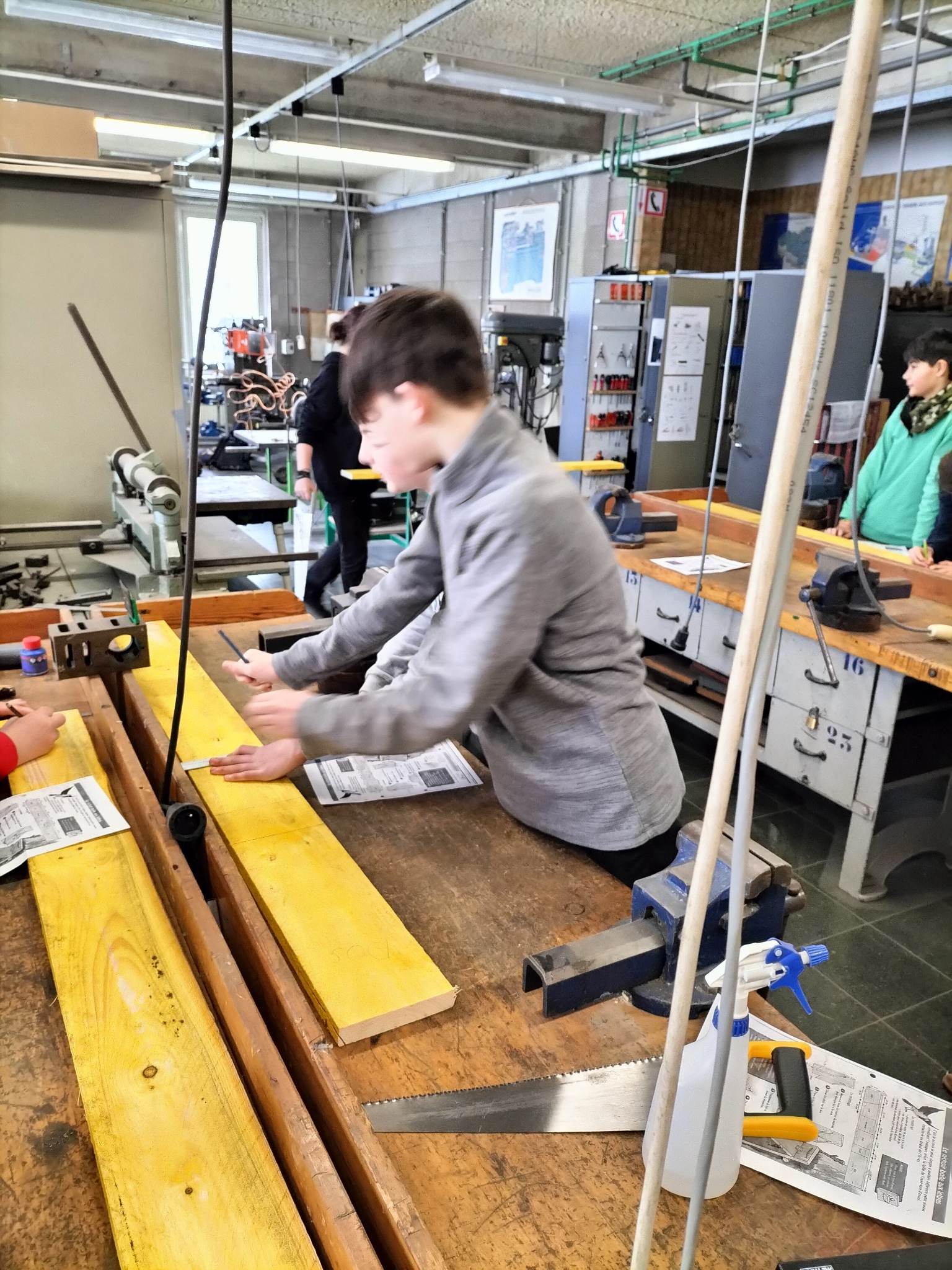 Fabrication d’un nichoir par les élèves de 1/2 différenciée, à partir de planches brutes : mesurer, découper, assembler, telle était leur tâche.