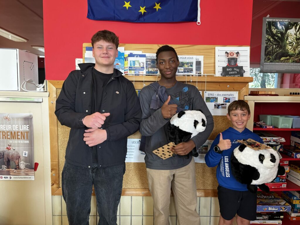 Mercredi 11 octobre, les membres du projet EPAS ont été remettre leur prix aux gagnants du jeu organisé à l’occasion de la Journée européenne des langues du mardi 26 septembre. Durant cette journée, les élèves devaient, grâce à des affiches mises dans le préau, associer une des façons de dire « bonjour » ou « au revoir » à sa langue d’origine. Les participations furent nombreuses et deux élèves, Messieurs Fransolet et Oleko, ont su se démarquer et gagner un bon chez Sister-sister (nous les remercions pour leur soutien) et une petite peluche.