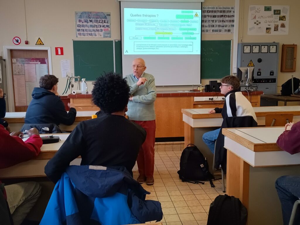 Ce 29 janvier, les élèves de 5 et 6 TTr sciences appliquées ont assisté à une rencontre intitulée : « La chimie, une arme redoutable contre le cancer ».